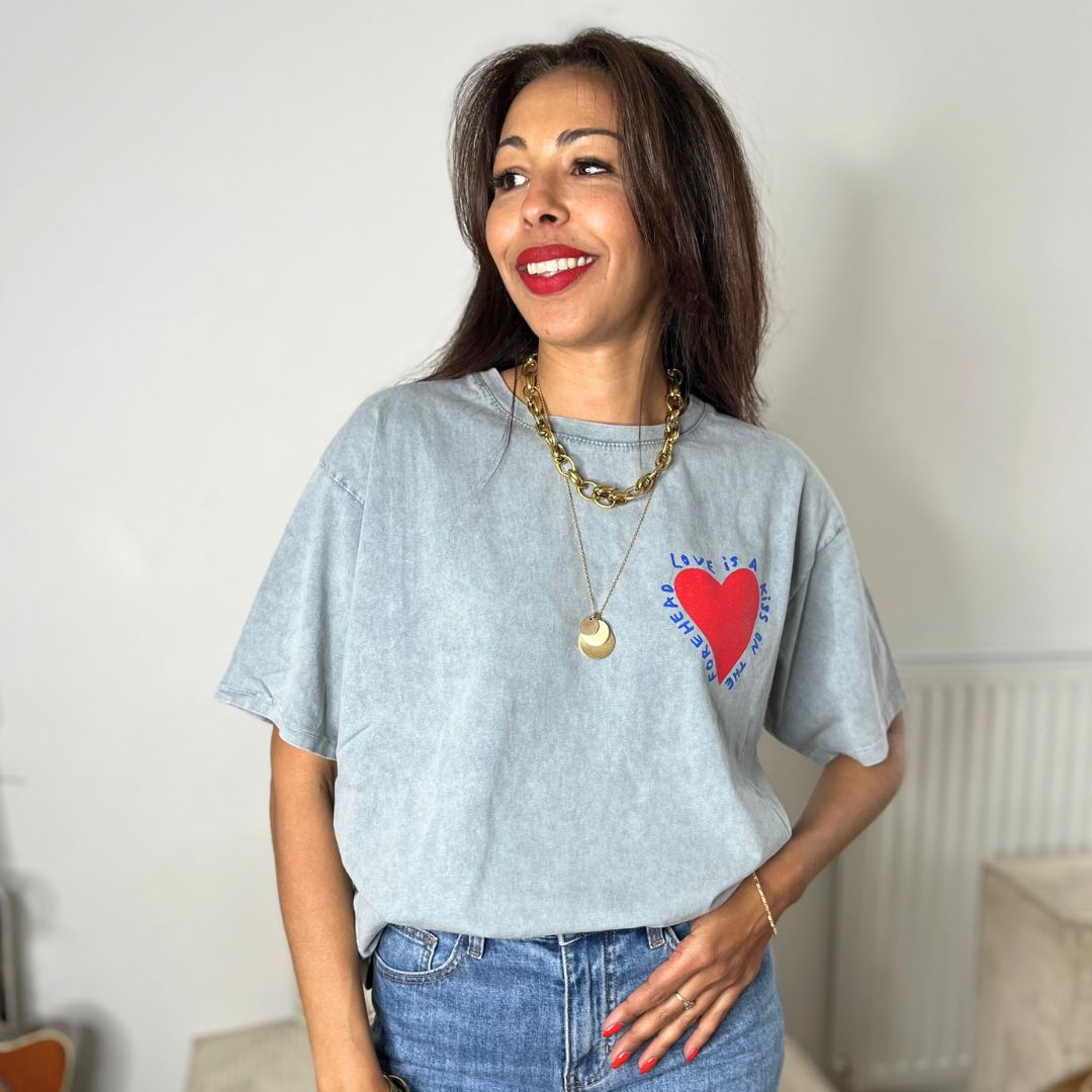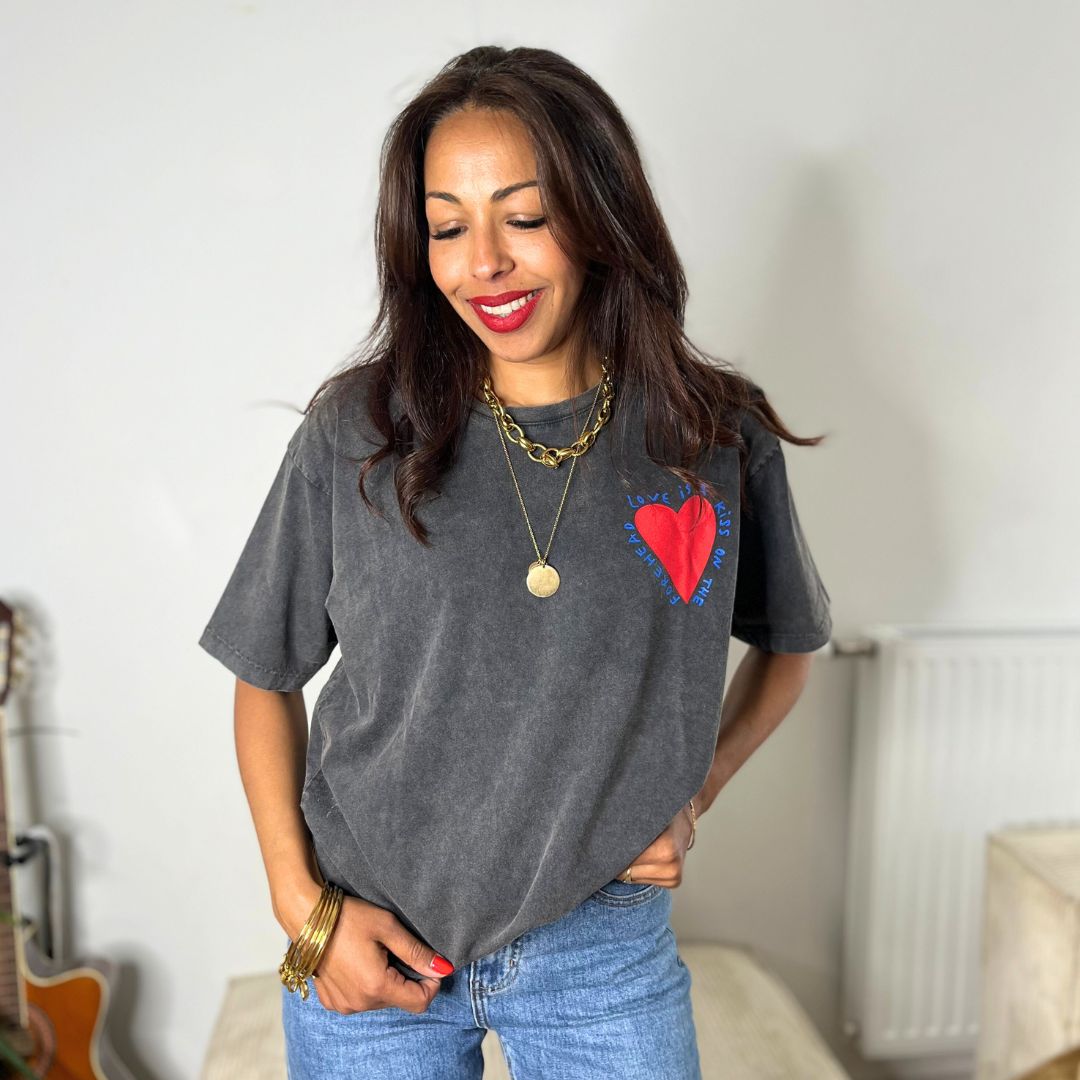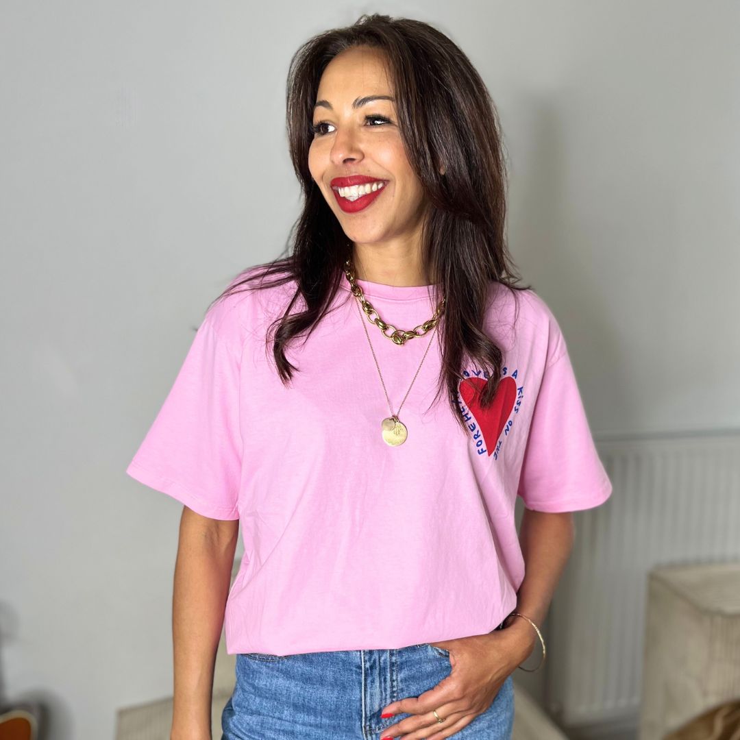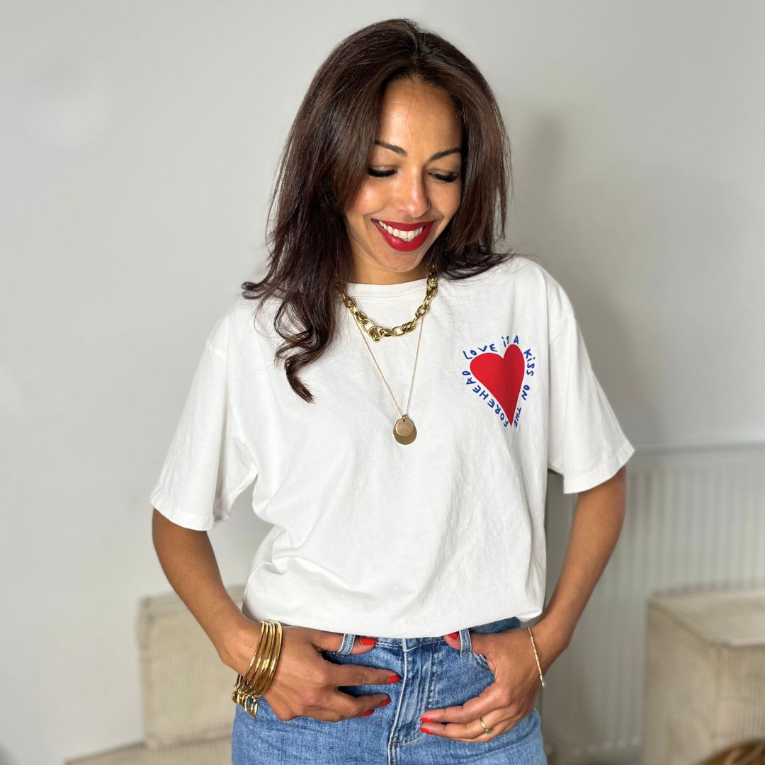 Avec son message doux et son style oversize tendance, le t-shirt KISS s’impose comme la pièce coup de cœur de la saison. Confortable, poétique et facile à porter, il vous accompagne dans tous vos looks, du plus cool au plus stylé.