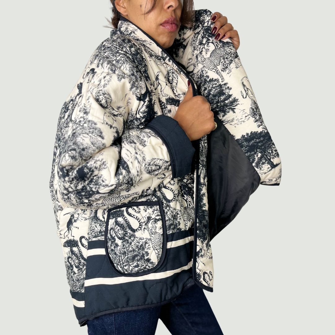 Chez Isaanny, nous sommes fiers de vous présenter nos dernières trouvailles en matière de vestes matelassées. Parmi elles, découvrez la veste JULIE, dotée d'épaulettes et disponible dans trois superbes coloris : kaki, camel et bleu marine. Ou laissez-vous séduire par la veste ENVY, noire et blanche, arborant un motif toile de Jouy qui vous assure un style unique.