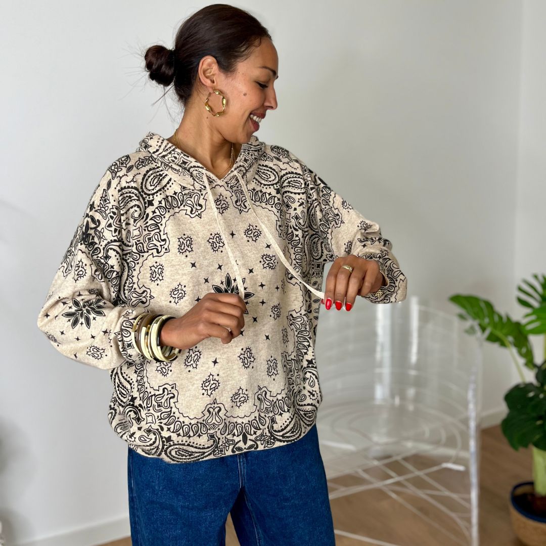 Avec son motif bandana audacieux, ce sweat se porte aussi bien avec un jean, qu’avec une jupe et des baskets. Il est parfait pour apporter une touche d'originalité à toutes vos tenues.